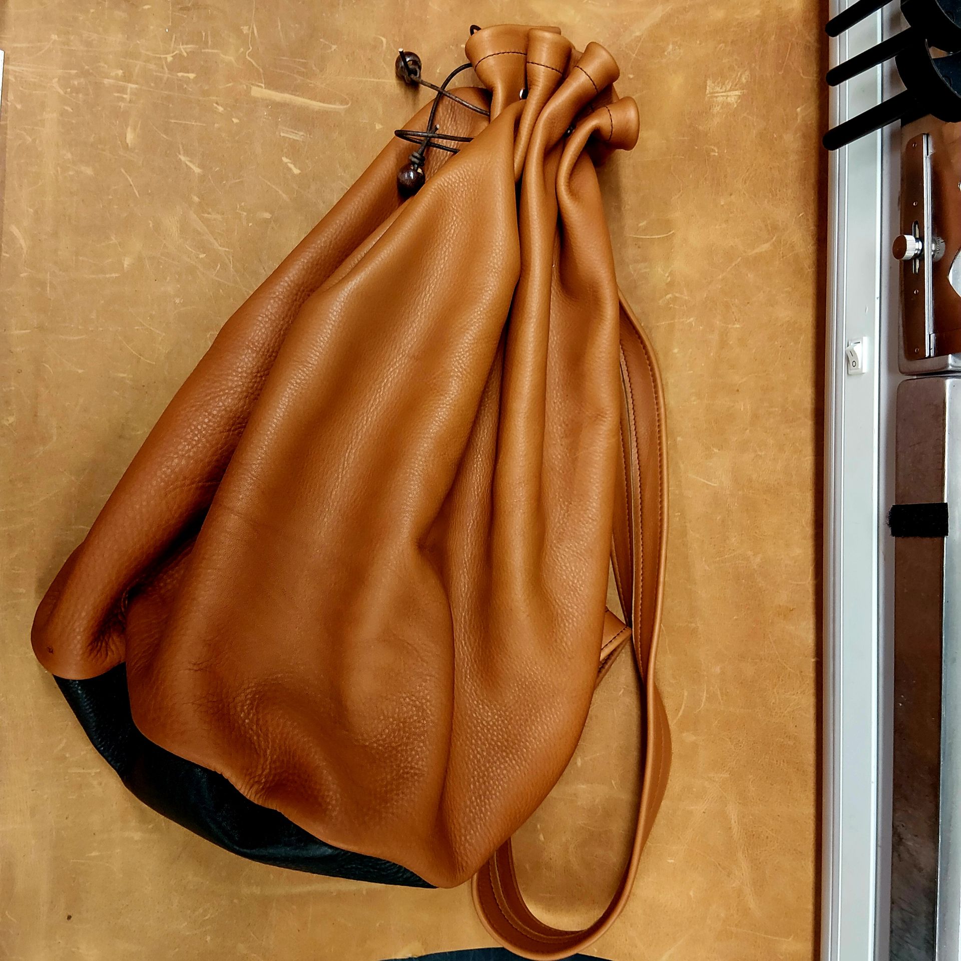 materiál: vysoce kvalitní lícová telecí kůže 2-3mm valchovaná, dno a popruh vyztužené plátnem